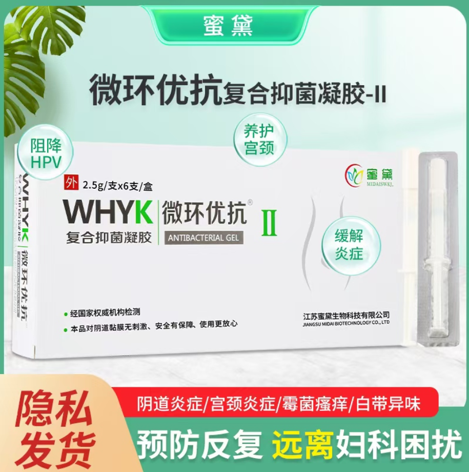 蜜黛微环优抗复合抑菌凝胶能杀灭致病病原体,重建阴道微生态平衡,其中蛋黄球蛋白可靶向作用于特定病毒,乳酸和乳酸杆菌则助力维持阴道酸性环境,适用于有私处不适症状、特定病毒感染及高危人群等,为女性健康提供多方面呵护。