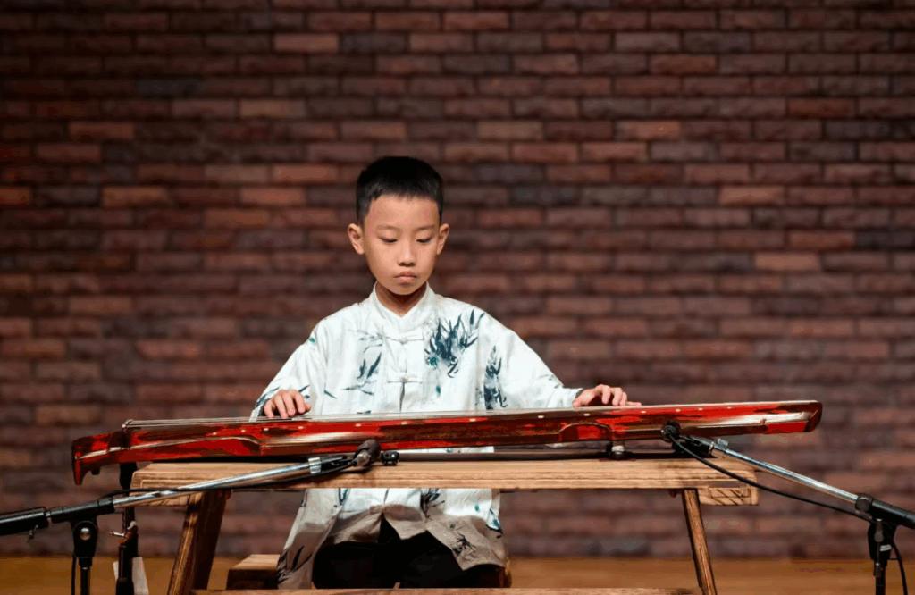 邸子铭 :10岁,幼承家学,古琴师从其父邸聆桐。演奏曲目:《小草》:该曲为考级曲目,根据歌曲改编,旋律简单而优美,借小草平凡而顽强的生命力,抒发淡泊自足、不为境遇所屈的豁达情怀。